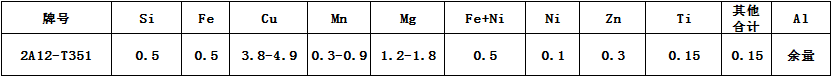 2A12為Al-Cu系中的典型硬鋁合金,狀態T351,其成份比較合理,綜合性能較好,是硬鋁中用量最大的。強度高,有一定的耐熱性,強度比7075合金的還高。熱狀態、退火和新淬火狀態下成型性能都比較好,熱處理強化效果顯著??刮g性較差,但用純鋁包覆可以得到有效保護;焊接時易產生裂紋,但采用特殊工藝可以焊接,也可以鉚接。